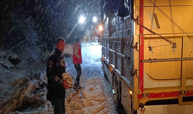 Van’ın Muradiye ilçesinde yoğun kar yağışı nedeniyle yolda mahsur kalan araçlar ekiplerin çalışmalarıyla kurtarıldı.