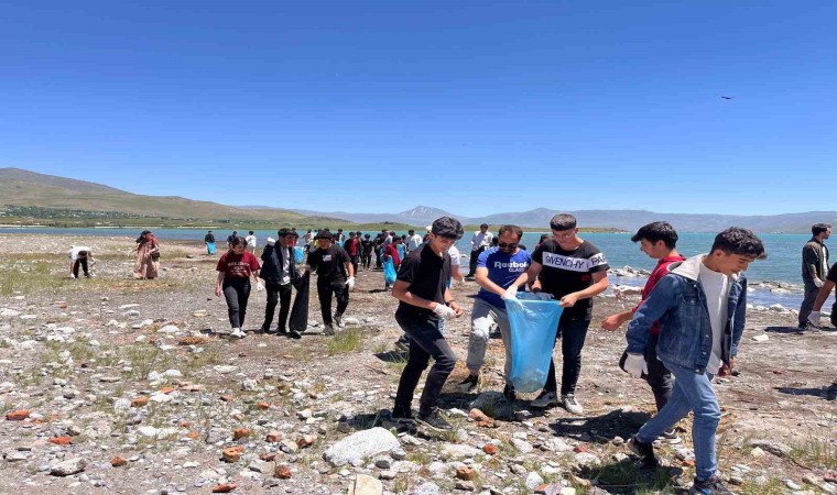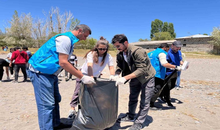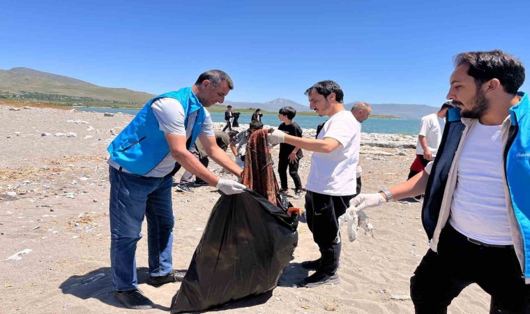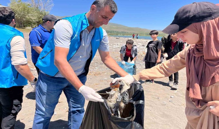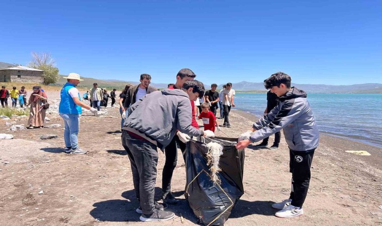 Van’ın Muradiye Gençlik Merkezi Müdürlüğü tarafından düzenlenen programla Van Gölü kıyısında çevre temizliği yapıldı.