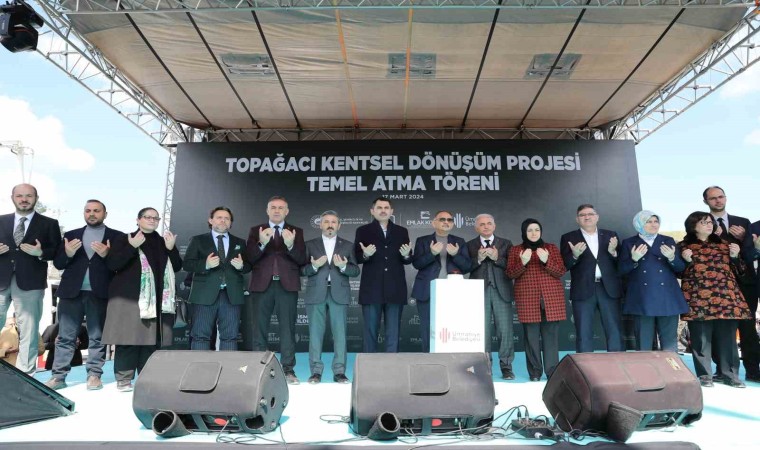AK Parti İstanbul Büyükşehir Belediye (İBB) Başkan Adayı Murat Kurum, Ümraniye’de düzenlenen Topağacı Kentsel Dönüşüm Projesi temel atma törenine katıldı. Programa Murat Kurum’un yanı sıra Çevre, Şehircilik ve İklim Değişikliği Bakanı Mehmet Özhaseki, Ümraniye Belediye Başkanı İsmet Yıldırım, Emlak Konut Genel Müdürü Cengiz Erdem, TOKİ Başkanı Ömer Bulut, milletvekilleri ve çok sayıda vatandaş katıldı. Saygı duruşu ve İstiklal Marşı’nın okunmasıyla başlayan tören, protokol konuşmalarıyla devam etti. Ardından protokolün sahneye çıkıp butonlara basmasıyla ilk beton harcı döküldü. Törende ilgiyle karşılanan Kurum, vatandaşlarla sohbet edip hatıra fotoğrafı da çektirdi.