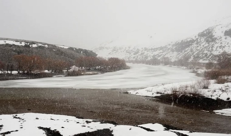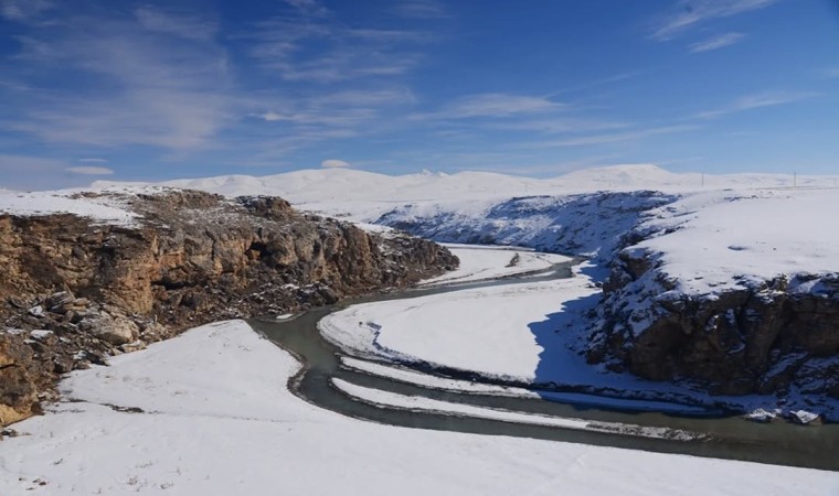 Ağrı’nın Diyadin ilçesinde Murat nehri buz tuttu.