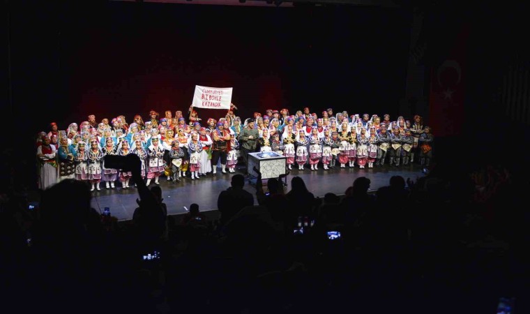 Türkan Şoray Kültür Merkezi’nde iki gün dolu salona oynayan gösteride Çanakkale Savaşı’ndan Kurtuluş Savaşı’na uzanan dönemde Anadolu’nun dört yanında yaşanan hüzünler, sevinçler, fedakârlıklar halk danslarıyla anlatıldı. Gösteri ‘Diriliş, Direniş ve Kutlama’ ismiyle üç bölüm ve 2 perde oluşan gösteride halaylar, horonlar ve zeybekler hikâyelerle birleştirildi.