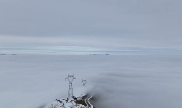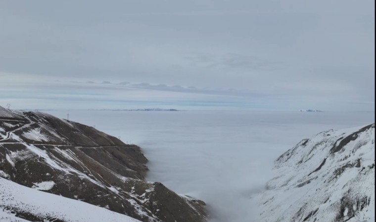 Muş Ovası’nı ve dağların etekleri kaplayan sis, kartpostallık görüntüler oluşturdu.