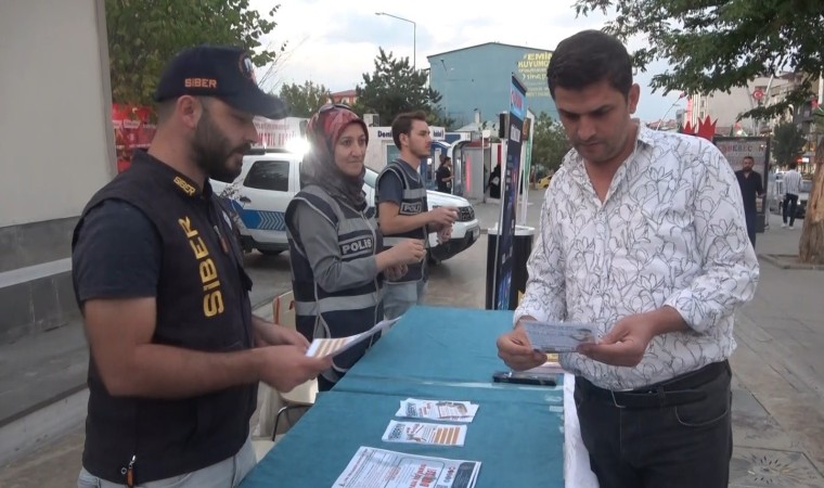 Muş İl Emniyet Müdürlüğü ekipleri, kurulan stantta vatandaşlara dolandırıcıların son zamanlarda en çok başvurduğu yöntemleri anlattı.