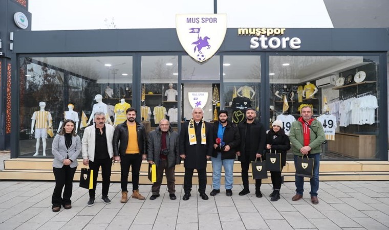Kuşadasıspor maçı öncesi Muş Spor Kulübü Storeyi ziyaret eden Muş Valisi Avni Çakır, haber takibi yapan basın mensuplarına forma hediye ederek tüm Muşluları kulübe destek olmaya davet etti.
