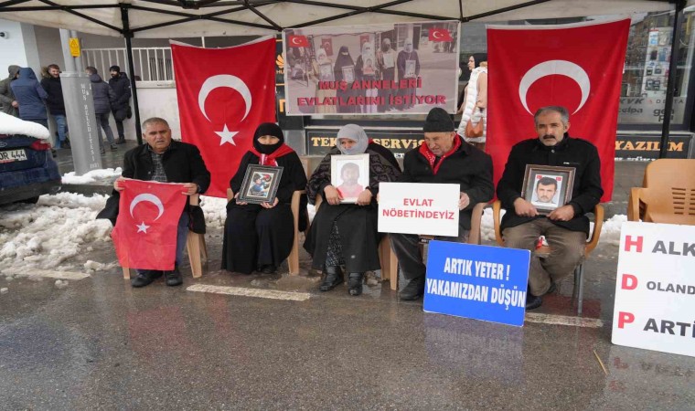 Çocuklarının terör örgütü PKK mensupları tarafından dağa götürülmesinden HDP’yi sorumlu tutarak Muş İl Başkanlığı önünde oturma eylemi başlatan aileler, olumsuz hava şartlarına rağmen kararlı bir şekilde devam ettirdikleri evlat nöbetini sürdürüyor. HDP İl Başkanlığı önünde toplanan aileler, "Halk düşmanı parti", "Evlatlarımızı vereceksiniz", "Ha HDP ha PKK", "Türk-Kürt kardeştir, HDP kalleştir", "Halkı dolandıran parti", "Anneler direniyor", "Artık yeter yakamızdan düşün" ve "Yeter artık evlatlarımızı bırakın" yazılı pankartlar açtı. Her çarşamba parti önünde bir araya gelen anne ve babalar, fotoğraflarını taşıdıkları çocuklarına teslim olmaları için çağrıda bulundu.