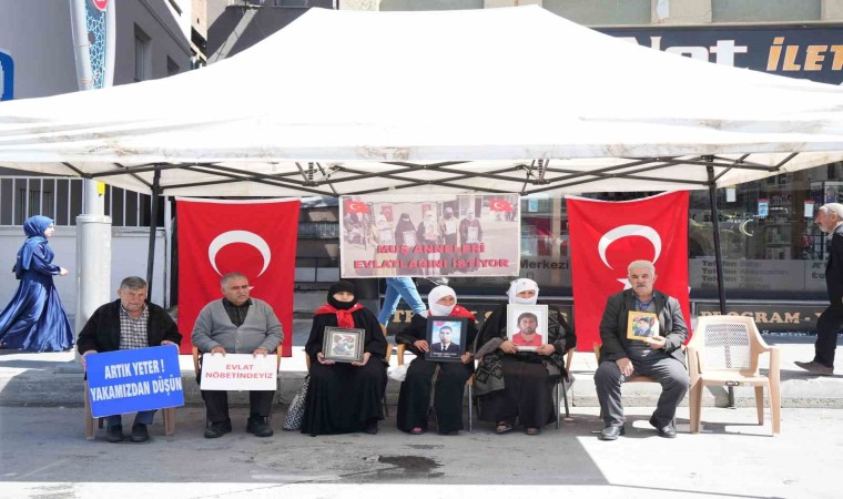 Muş’ta çocukları terör örgütü PKK tarafından kaçırılan aileler, DEM Parti il binası önündeki oturma eylemini sürdürüyor.