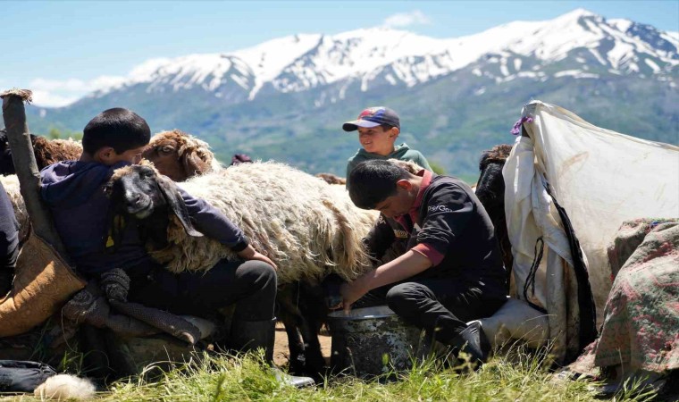 Güneydoğu Anadolu Bölgesi’ndeki illerden yaklaşık bir aylık yolculuğun ardından Muş’un serin ve verimli yaylalarına sürüleriyle gelen berivanlar süt sağım mesaisine başladı.
