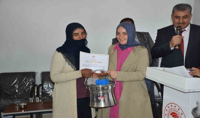 1 milyon 205 bin küçükbaş hayvan varlığı ile ülkenin önemli hayvancılık merkezlerinin başında gelen Muş’ta yaklaşık 50 berivana eğitim verdiklerini ifade eden Tarım ve Orman İl Müdürü Mehmet Gün, ilde yılda ortalama 70 bin ton süt toplandığını belirterek, “Tarım ve Orman Bakanlığı Eğitim ve Yayım Daire Başkanlığımız tarafından finanse edilerek desteklenen ‘Süt ve Sağım Hijyeni Projesi’ çerçevesinde berivanlarımıza eğitim verdik. Özellikle küçükbaş hayvan konusunda yaygın olan köylerimizden biri olan Ağartı köyümüzde yaşayan berivanlarımıza önce hem eğitmek hem de bu eğitim sonucunda da eğitim içeriği olan konularda küçükbaş sağımında kullanacakları malzemeler tek tek tanıtılıp yapılanması için de geliştirilen bir projedir. Çünkü ilimizde bizim 1 milyon 205 bin küçükbaş hayvanımız var. Burada yaklaşık 70 bin tona yakın bir süt elde edilmektedir. Tarım ve Orman İl Müdürlüğü olarak pilot bölge olarak seçtiğimiz Ağartı köyünde 50 berivanımıza kurs verildi. Bu kurs sonunda da sertifikaları kendilerine taktım ettik” dedi.