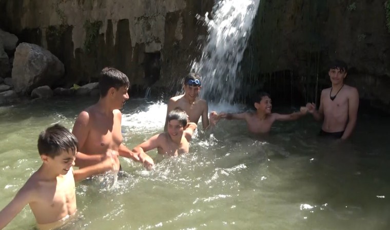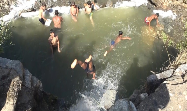 Suda yüzen çocuklar zaman zaman halay da çekerek serinlemenin keyfini çıkarıyor.