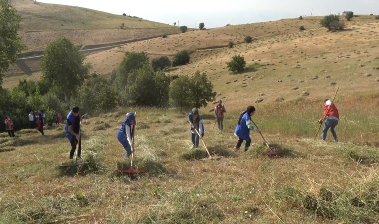 Gençlik Merkezi Gönüllülerinden Betül Zehra Çağlayan, ilk kez tırmıkla ot topladığını ifade ederek, yaşlı adamın talebi üzerine köye geldiklerini ve gönüllü olarak yardım ettiklerini dile getirdi. Bu deneyimin zorlu olduğunu ancak çok anlamlı olduğunu belirtti.