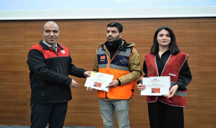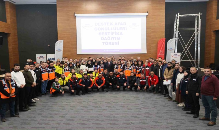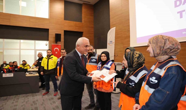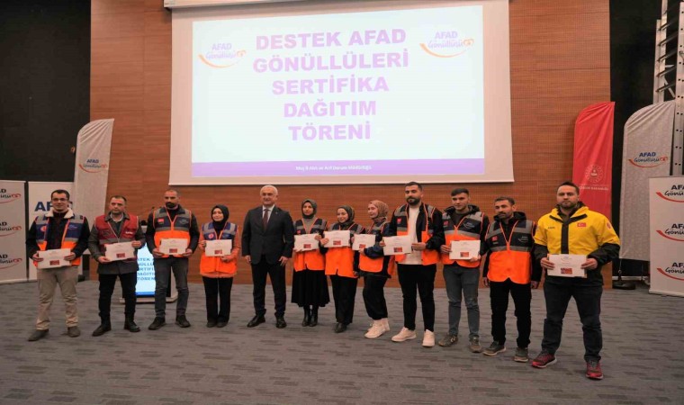 Muş Afet ve Acil Durum Müdürlüğü tarafından düzenlenen ’Destek AFAD Gönüllüleri Sertifika Dağıtım Töreni’nde 164 gönüllü sertifikalarını aldı.