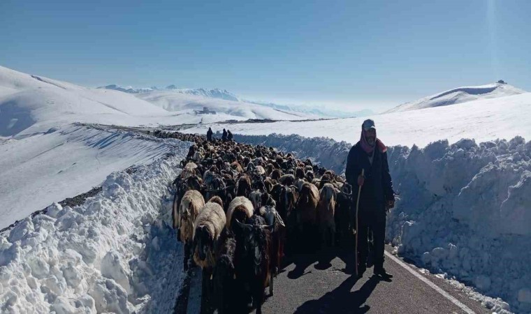 Merkeze bağlı Arı köyünde geçmiş yıllara kıyasla daha erken bastıran yoğun kar yağışı, sürü sahiplerini geri dönüş yolculuğu için harekete geçirdi. Küçükbaş hayvanlarını Muş’a doğru yola çıkaran besiciler, 2 bin 500 rakımlı Çavuştepe mevkiinde etkili olan fırtına nedeniyle yolun kapanmasından dolayı bir süre mahsur kaldı. Durumun bildirilmesi üzerine İl Özel İdaresi Yol ve Ulaşım Hizmetleri Müdürlüğü ekipleri bölgeye sevk edildi. Yol temizlenerek ulaşıma açıldı. Yaklaşık 7-8 saat süren zorlu bir yolculuğun ardından besiciler, 2 bin koyununu güvenli bir şekilde karla kaplı arazilerden geçirerek Muş’taki ahırlarına ulaştırdı.