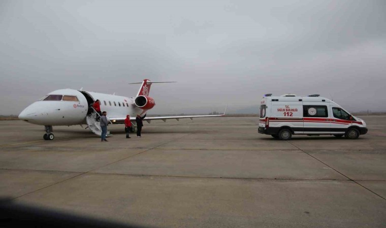 Muş’ta Tip-1 Trunkus Arteriozus tanısı konulan 8 günlük bebek ve Siirt’ten 112 Acil Sağlık ekiplerince kara yoluyla Muş’a getirilen 15 yaşındaki hipertansiyon hastası kız, ambulans uçakla Ankara’ya sevk edildi.
