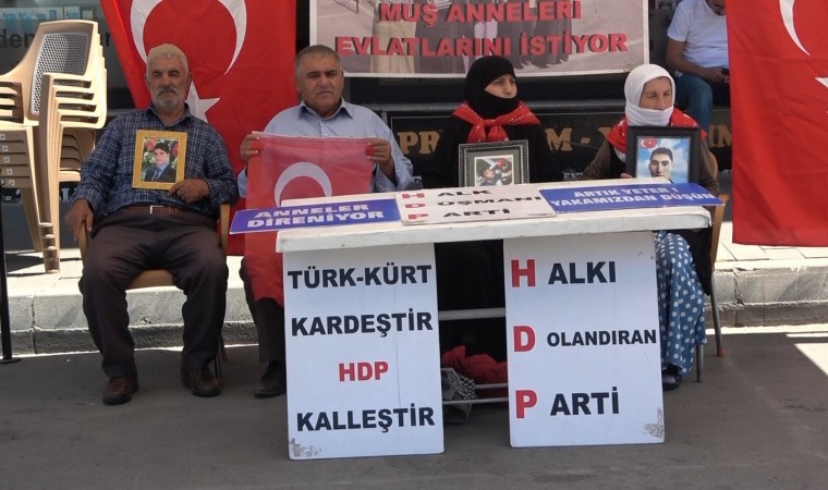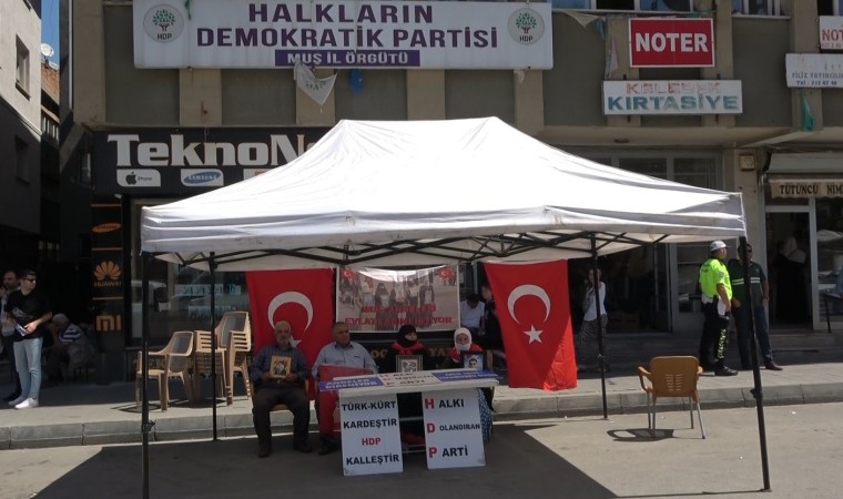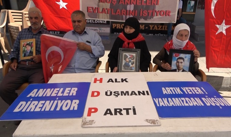 Muş’ta çocuklarının terör örgütü PKK tarafından kandırılarak dağa kaçırılmasından HDP’yi sorumlu tutan ailelerin evlat nöbeti sürüyor.