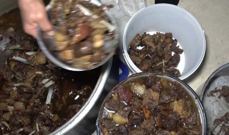 MUŞ (İHA) – Muş’un Karabey köyünde kışlık kavurma yapımı için kazanlar kuruldu, meşe ateşinde etler kavrularak kış için stoklanıyor.
