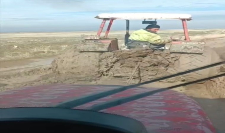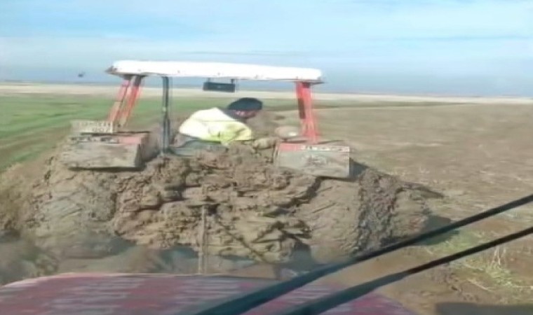 Muş’un Malazgirt ilçesinde, günlerdir etkili olan yağışlardan dolayı bataklığa dönen pancar tarlasında çiftçilerin zorlu mesaisi devam ediyor.