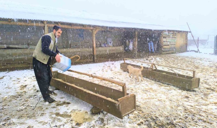 Muş’ta gece saatlerinde etkisini artıran kar yağışı kent merkezini beyaza bürüdü. Güne karla uyanan besiciler, zorlu kış mesaisini sürdürdü.