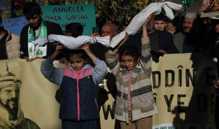 Belediye meydanında toplanan kalabalık, İstasyon Caddesi’nden İmamı Şafi Camisi’ne kadar yürüyerek, İsrail’i protesto etti. Dev Filistin bayrağının açıldığı yürüyüşe, sivil toplum kuruluşu temsilcileri ve vatandaşlar katıldı.