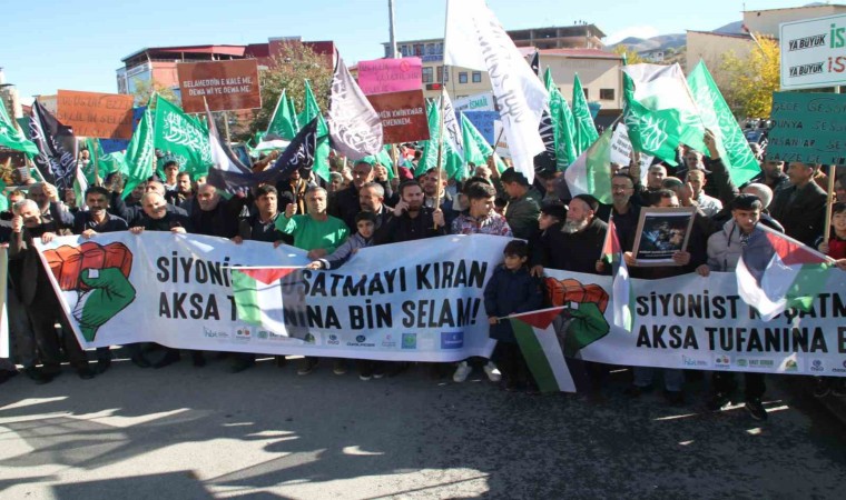 Muş’ta Cuma namazının ardından belediye önünde bir araya gelen Mescidi Aksa Platformu üyeleri ve vatandaşlar, İsrail’in Gazze’ye yönelik saldırılarını protesto etmek için "Büyük Gazze Yürüyüşü" düzenledi. Program, Kur’an-ı Kerim tilavetiyle başladı. Belediye meydanında toplananlara Arapça hitap eden Filistinli Alimler Birliği Başkanı Nevaf Tekruri’nin konuşmasını, Mescidi Aksa Platformu üyelerinden Dr. Öğretim Üyesi Abdulkadir Şen, Türkçe tercüme etti. Tekruri, "Kudüs’te şahitlik ediyor ki sizler Selahattin Eyyubi’nin yanındasınız. Sadece Allah için gücümüzü bir araya getirip birlik olmalıyız. Mescidi Aksa ümmetin cihadıdır. Tufanı Aksa ümmetin davasıdır, sadece Filistin’in değil sizin de davanızdır. İşte bu Mescidi Aksa tufanını başlatan yiğitlerimiz, Peygamber Efendimizin izinde yürüyorlar. Ashabın yolunda ilerlemek için bu savaşı başlattılar. Bu savaşı mücahitler başlatmadı, ülkemizi işgal edenler başlattı. Osmanlı Devleti Filistin’den çekildikten sonra bu savaş 1940’lı yıllarda başladı, şimdi başlamadı. Savaşı başlatanlar her gün Mescidi Aksa’ya hakaret edenlerdir. Her gün bu aşağılık Siyonistler pis ayakkabılarıyla mescidimize gidiyorlar, mescidimize hakaret ediyorlar. Muş halkı, düşünün ki Siyonist askerler, kız kardeşlerimizi, annelerimiz Mescidi Aksa’dan yerlere yatırıyor saçlarından çekiyor, onların namusuna el uzatıyor. Ne yapsın bu mücahitler, sussunlar mı? Her gün Yahudiler kamp ve evlere saldırıyor. Oraları Müslümanların başına yıkıyorlar. Çocuklarımızı kadınlarımızı ve yaşlılarımız katlediyorlar. Yakında sizlerde bu cihada daim olacaksınız. Bu ümmetin her bir ferdi layık olduğu gibi mescide sahip çıkacak. Düşmanın deliler gibi saldırması aldığı yaradan dolayıdır” dedi.