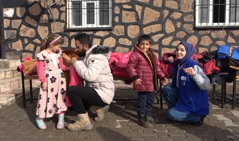 Kış mevsimini sıcak geçirmeleri için hayırsever vatandaşlardan gelen mont ve bot yardımlarını köy köy dolaşarak dağıtan gençler, çocuklarla oyunlar oynayarak güzel vakit geçirmelerini sağladı.