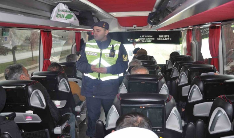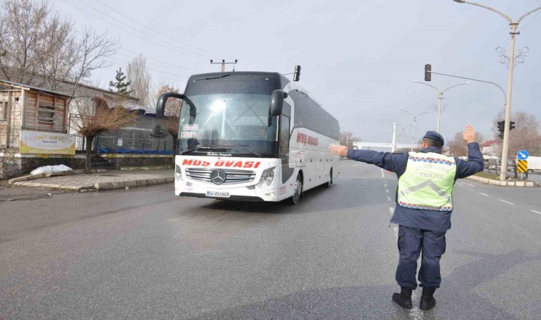 Muş’ta jandarma ekipleri, şehirlerarası yolcu otobüslerinde seyahat eden yolcuların emniyet kemeri kullanımını denetledi.
