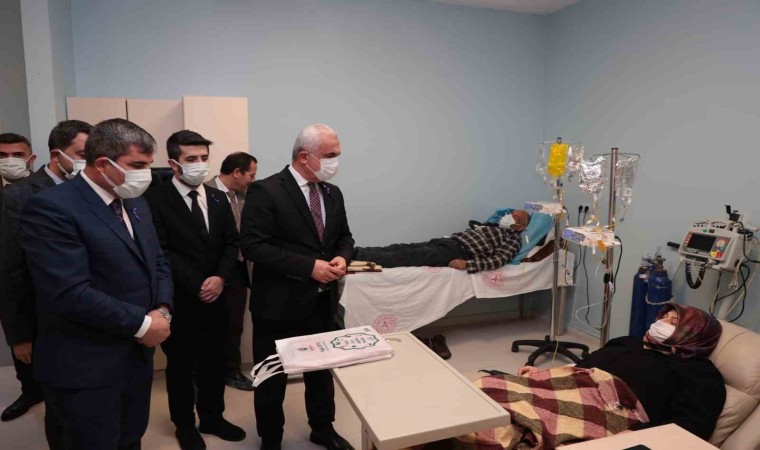 Vali Çakır ve beraberindekiler, daha sonra Devlet Hastanesi’nde kemoterapi tedavisi gören hastaları ziyaret etti. Programa Devlet Hastanesi Başhekimi Acil Tıp Uzm. Ömer Başer de katıldı.