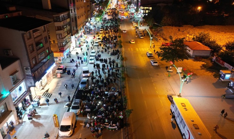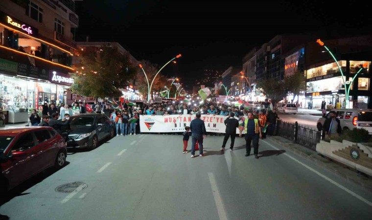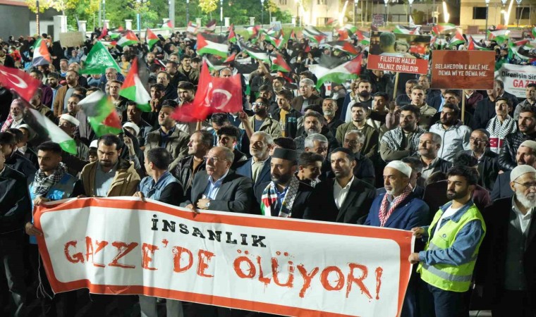 Konuşmanın ardından vatandaşlar. ellerinde Filistin ve Türk bayraklarıyla sloganlar atarak Kent Meydanı’ndan İmamı Şafi Camii’ne kadar yürüdü. Burada dua edilmesinin ardından kalabalık sessizce dağıldı.