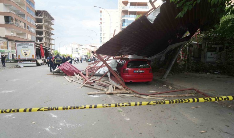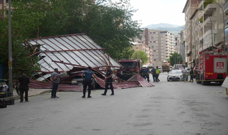 Muş’ta etkili olan fırtına nedeniyle 12 katlı bir binanın çatısı uçtu. Binadan düşen parçalar 3 araçta maddi hasara yola açtı.
