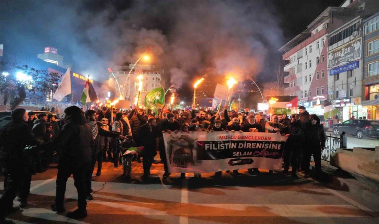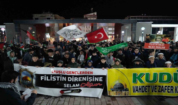 Muş’ta İsrail’in Filistin’e yönelik saldırıları, yüzlerce kişinin katıldığı meşaleli yürüyüşle protesto edildi.