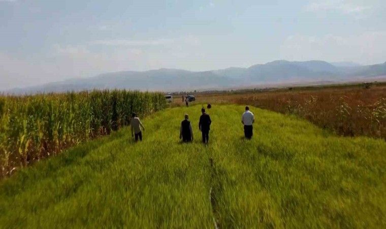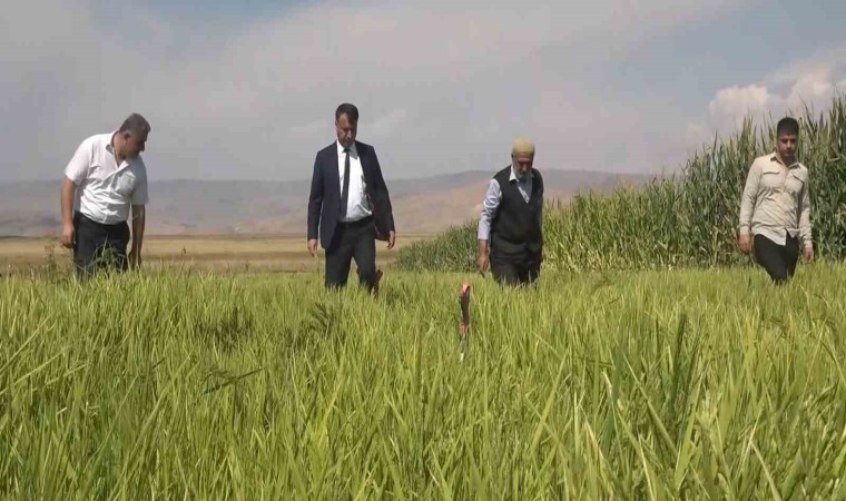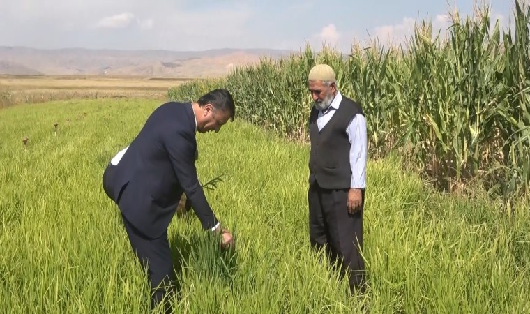 Muş’ta ilk defa deneme amaçlı 3 dekara ekimi yapılan pirincin hasat öncesi son bakımı yapıldı.