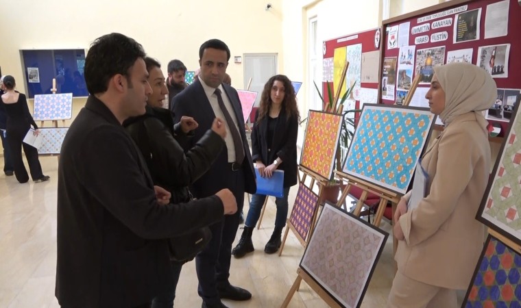 Öğrencilerin 12 haftada hazırladığı 27 eser, eğitim fakültesinde sergilendi. Serginin koordinatörü Doç. Dr. Yılmaz Mutlu, "İslami Geometrik Süslemeler" dersi kapsamında hazırlanan eserlerin sergilendiğini ifade ederek, ilk defa böyle bir serginin açıldığını söyledi. Mutlu, "Bizler matematik eğitimcileri olarak aslında İslami geometrik süslemelerini ele aldık. Süslemelerin doğrudan matematik ve geometri öğretiminde kullanılabilmesine yönelik bir entegre sürecini gerçekleştirmeye çalıştık. Öğrencilerin sergide yer alan eserlerinin tamamı ders kapsamında hazırlandı. Görselleri tasarlayarak aslında matematikle bütünleştiğini gösterdik. 12 haftalık bir sürede süslemeleri hazırladık. Öncelikle çizim tekniklerini, daha sonra bunu matematik dersine nasıl entegre edeceğimizi ders planları kapsamında hazırlandık. Bu doğrultuda çizimler yapılarak boyamalar gerçekleştirildi. Her bir arkadaşımız aslında birden fazla eser yaptı. Şu an burada 27 farklı eser bulunmaktadır" dedi.