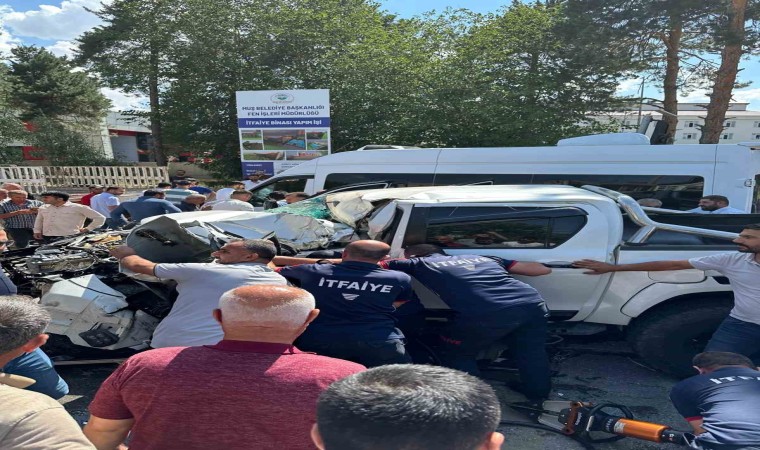 Muş’ta çift kabinli kamyonetin kamyona arkadan çarpması sonucu 2 kişi yaralandı.