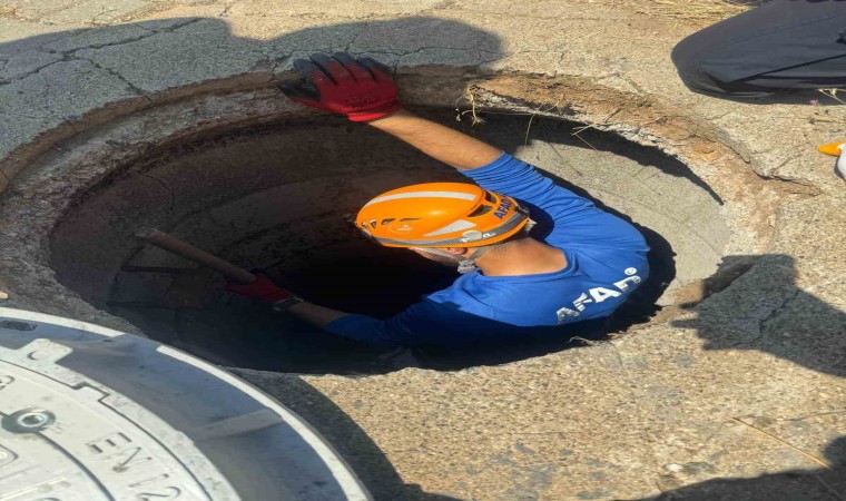 Muş’ta kanalizasyon çukuruna düşen yavru köpek AFAD ekipleri tarafından uzun uğraşlar sonucunda kurtarıldı.