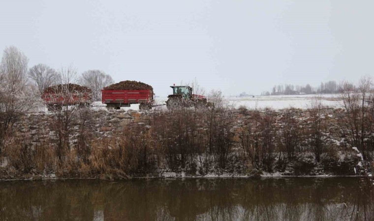 3 milyon 570 bin dekar tarım arazisi ile Türkiye’nin üçüncü ekilebilir alanına sahip olan Muş Ovası’nda pancar hasadına kar altında devam ediliyor. Bin 711 üreticinin yaklaşık 85 bin dönüm alanda ekimini yaptığı şeker pancarının sökümü ekim ayında başlamıştı. Kentte geçmiş yıllara göre erken yağan kar nedeniyle hazırlıksız yakalanan çiftçilerin pancarı tarlada kaldı. Kar yağışı tarım arazilerini beyaza bürürken, pancarı kar altında kalan çiftçilerin mesaisini artırdı. Tarlada yaktıkları ateşin başında ısınan çiftçiler, gece gündüz mesai yaparak pancar sökümünü sürdürüyor. Söküm esnasında çamura saplanan kamyon ve traktörlerin yardımına ise komşu tarladaki traktörler yetişiyor. Çiftçiler, sökümünü yaptıkları pancarları traktör ve kamyonlarla Muş Şeker Fabrikasına taşıyor.