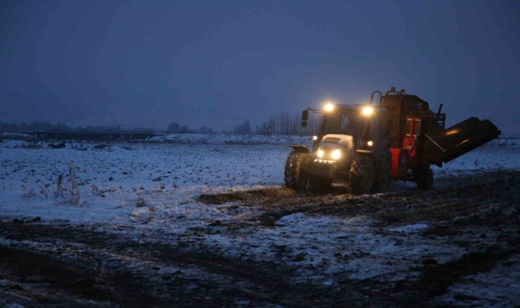 Aylarca emek verdikleri pancarlarının kar altında kalmaması için yoğun bir mesai yaptıklarını ifade eden Ömer Subaşı ise, “İlkbaharda ektiğimiz pancarları tarlalarda iki ay önce sökmeye başladık ve halen de söküm işlerimiz devam ediyor. Tarlalar çok olduğu için sökümü yetiştiremedik. Kar yağışı ile birlikte tarlalar kar altında kaldı. Bizler de şu an gece gündüz büyük emekler ve uğraşlarla pancarları sökmeye çalışıyoruz. İnşallah daha fazla kar yağmadan çalışmaları bitiririz” şeklinde konuştu.
