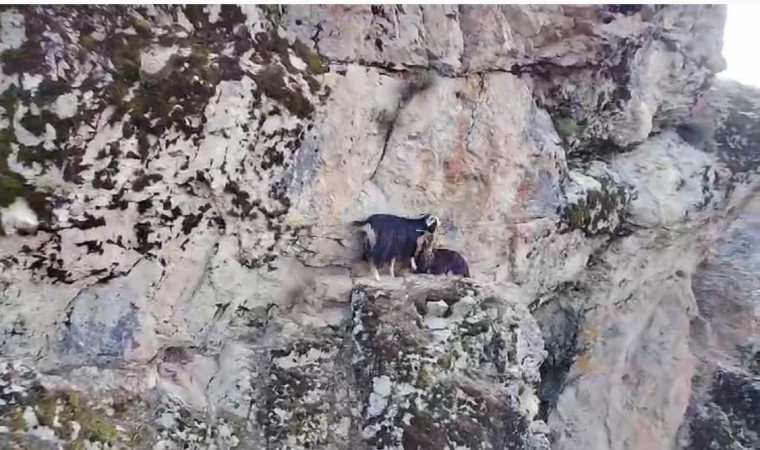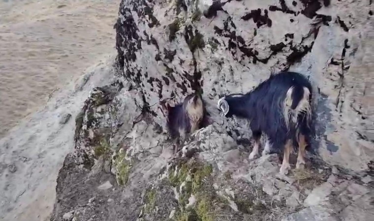 AFAD ve itfaiye ekipleri, 4 gündür kayalıklarda mahsur kalan keçileri kurtarabilmek için büyük çaba sarf etse de keçileri mahsur kaldığı yerden kurtaramadılar. Keçiler mahsur kaldıkları kayalıkta dron ile görüntülendi.
