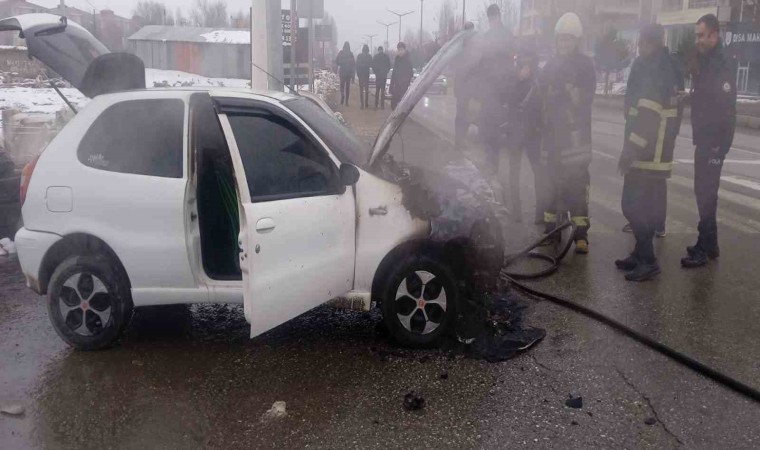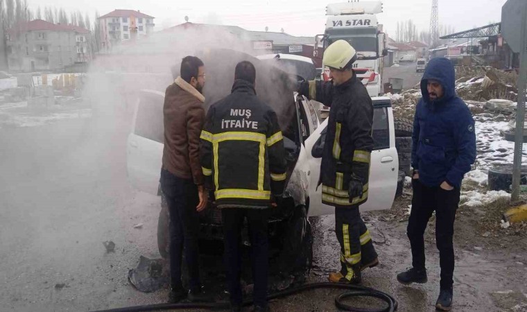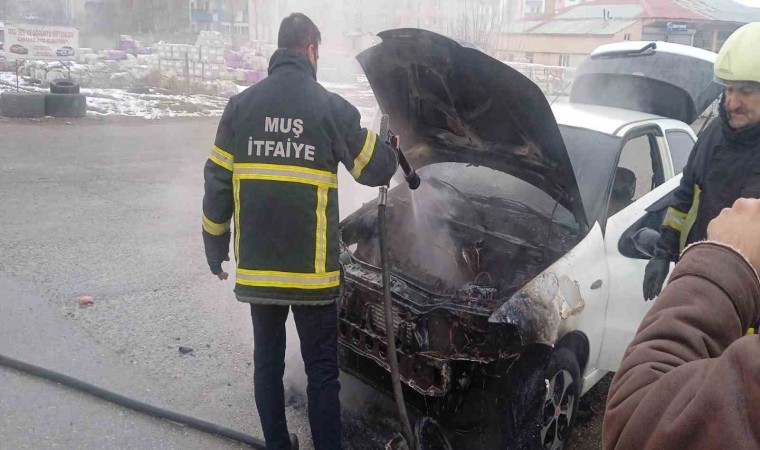 Muş’ta seyir halindeyken aniden alev alan otomobil kullanılamaz hale geldi.