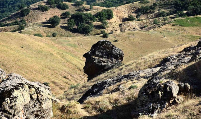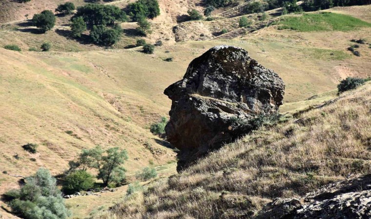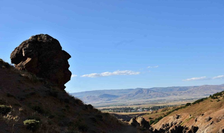 MUŞ (İHA) – Muş’ta doğal yollarla oluşan ve insan kafasına benzediği için ’Ovaya Bakan Adam’ adı ile gündeme gelen kaya taşı ziyaretçilerini ağırlıyor.