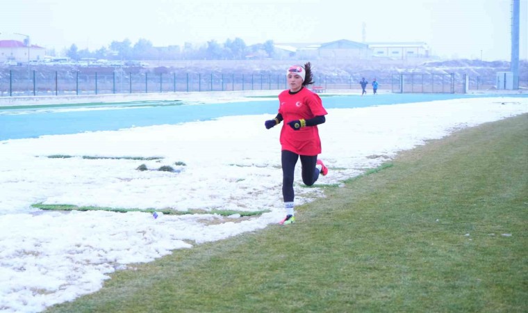 Muş’ta Avrupa Kros Şampiyonası’na hazırlanan milli atletler, çalışmalarını soğuk havaya rağmen sürdürüyor.