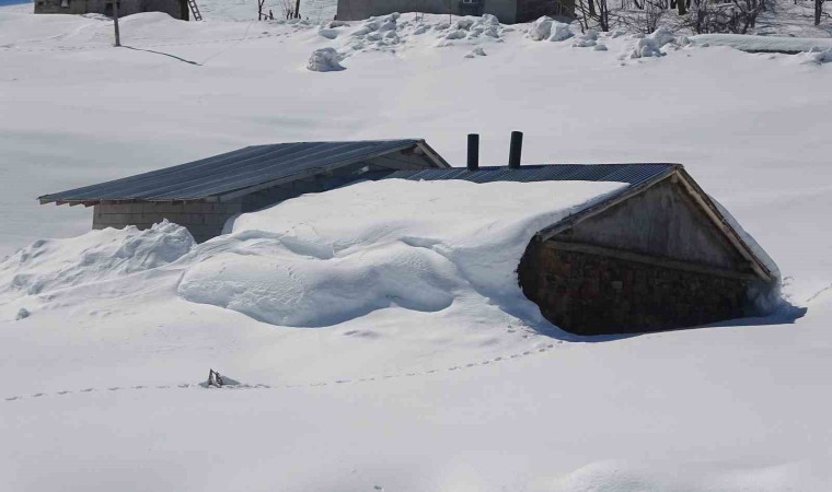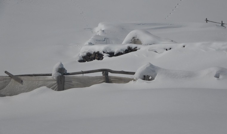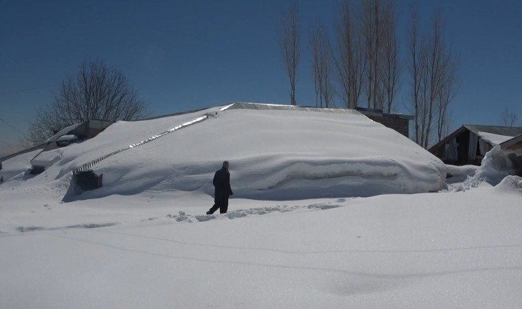 Muş’un yüksek kesimlerinde bir haftadır devam eden yoğun kar yağışı nedeniyle tek katlı evler ve ahırlar kara gömüldü.