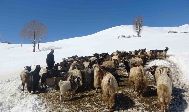 Günde iki kez, sabah ve öğle olmak üzere hayvanlarına yem verdiklerini söyleyen besicilerden Eyüp Omur, uzun süren kış mevsiminden dolayı hayvan yemlerinin tükendiğini ifade ederek, “Mart kapıdan baktırır kazma kürek yaktırır atasözünü şu an yaşıyoruz. 1 haftadır köyümüzde etkili olan kar yağışı her yeri beyaza bürüdü. Hava birden çok soğudu. Muş Ovası’nda hayvanlar dışarıda otlatılırken biz burada kar üzerinde hayvanlarımızı besliyoruz. Kar yağışından dolayı hayvanlarımızı kar üzerinde beslemeye devam ediyoruz. Samanlarımız bitmiş durumda. Kış mevsiminin uzun sürmesinden dolayı yem fiyatlarında artmış var. Son kar yağışı ile birlikte tek katlı evlerimiz tamamen kara gömüldü. Çatı ile yer bir oldu. Yazın merdivenle çıktığım çatıya yürüyerek çıktım” dedi.