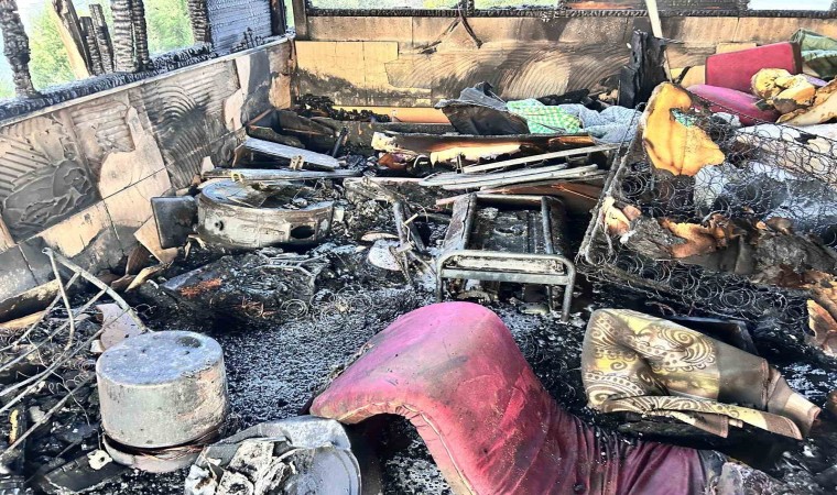 Hatay’da alevlere teslim olan müstakil evin çatkı katı kullanılmaz hale geldi.