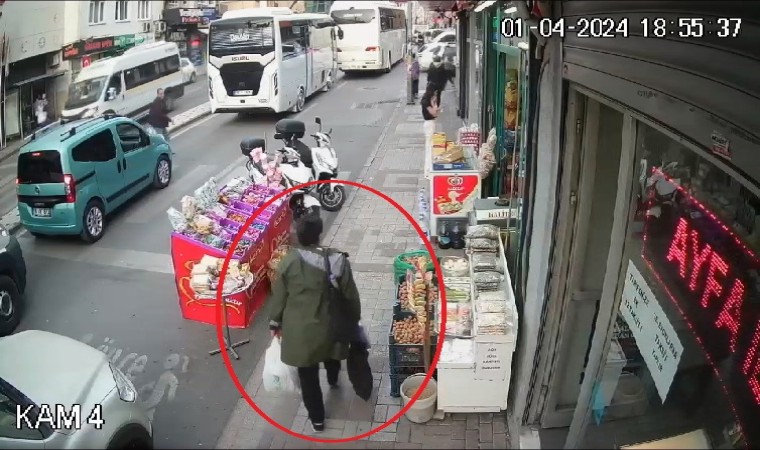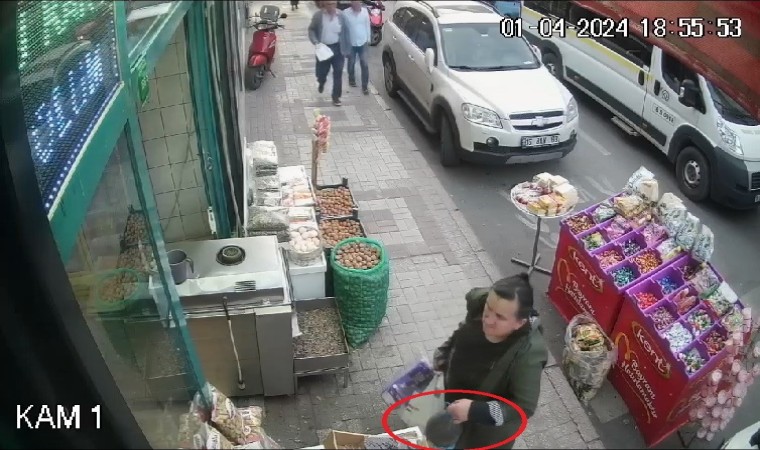 Bursa’da dükkan önünde duran zeytin bidonlarını gören kadın, önce müşteri gibi baktı daha sonra zeytin bidonunu alarak uzaklaştı. O anlar saniye saniye güvenlik kamerasına yansıdı.