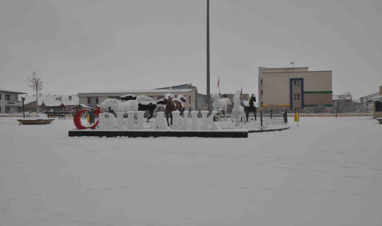 Muş’un Bulanık ilçesinde etkili olan kar yağışı ile birlikte ilçeyi beyaza büründü.