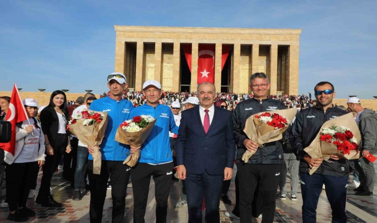 Mudanya’dan Ankara’ya 470 kilometre boyunca koşan sporculara ve güzergahtaki yürüyüş noktalarında kendisine eşlik eden herkese teşekkür eden Başkan Türkyılmaz, "Söz verdik, Cumhuriyetimizin 100. yılında Ankara’ya coşkuyla yürüdük. Milletimizin birlik ve beraberliği, değerlerine olan bağlılığı ve geleceğe olan inancıyla yürüdük. Birlikte yürüdüğümüzde, daha güçlü, daha aydınlık bir Türkiye’nin kapılarını aralayacağımızı bir kez daha gösterdik. Bu yol Cumhuriyet yolu, Mustafa Kemal Atatürk’ün çizdiği çağdaş uygarlık yolu. Nice yıllara Türkiye Cumhuriyeti, her zaman daha aydınlık yarınlara yürüyeceğiz. Cumhuriyet yürüyüşümüzü Önderimiz, ülkemizin kurucusu, ebedi Başkomutanımız, 100 yılın en büyük devrimcisi Mustafa Kemal Atatürk’ün huzurunda tamamladık. Onun büyük önderliği sayesinde, Türkiye Cumhuriyeti demokrasi, laiklik, eşitlik ve adalet ilkeleriyle şekillendi. Bu değerlere olan bağlılık, milletimizin ortak paydası. Cumhuriyetimizin 100. yılında, Atamızın huzuruna yürümek, onun mirasına olan bağlılığımızı ve minnettarlığımızı göstermek bizler için büyük bir onur. Her zaman, Atamızın izinde, onun yolundan ilerleyecek, ‘İlelebet Cumhuriyet’ diyeceğiz" ifadelerini kullandı.