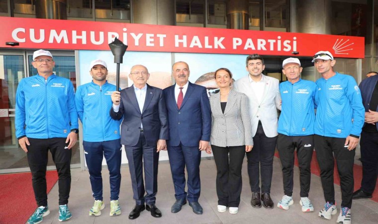 Başkan Türkyılmaz daha sonra CHP Genel Merkezi’nde Genel Başkan Kemal Kılıçdaroğlu ile bir araya gelerek, Cumhuriyet meşalesini takdim etti.