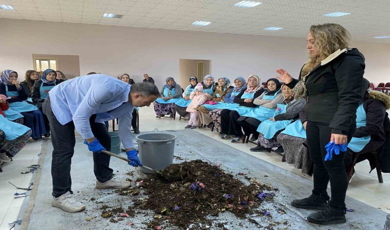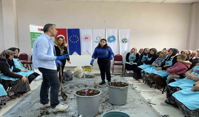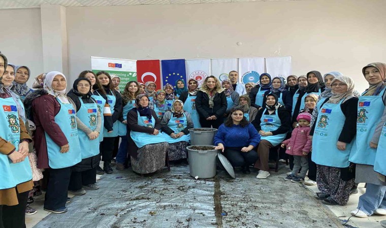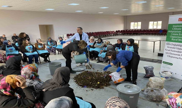 Kırsal kesimde yaşayan kadınlar hayata geçirilen proje ile mutfak atıklarından organik gübre yapmayı öğreniyor.