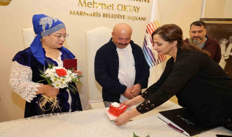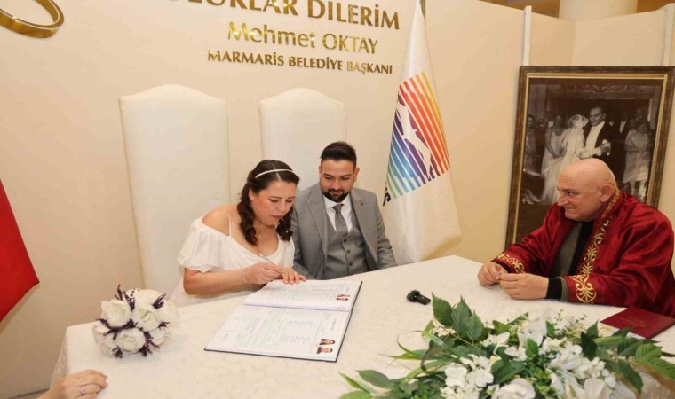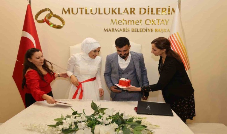 Nikah tarihlerini 14 Şubat Sevgililer Günü’ne denk getirerek özel ve akılda kalıcı bir tarihte evlenmek isteyen çiftler Marmaris Belediyesi nikah salonunda mutluluğa adım attı. Özel bir tarihte evlenmenin mutluluğunu yaşayan çiftler, akrabalarının ve arkadaşlarının huzurunda ’Evet’ dedi. Marmaris Belediyesi de nikahı kıyılan çiftlere kalp şeklinde pasta hediye etti. 14 Şubat’ta 4 çiftin nikahı kıyılırken, evlenmek için bu özel günü seçen mutlu çiftler bu tarihin kendilerine şans getireceğine inandıklarını belirtti. Diğer yandan 19 Mayıs Gençlik Meydanı’nda da Sevgililer Günü için özel bir fotoğraf köşesi hazırlandı. Bugünü ölümsüzleştirmek isteyenler alanda bol bol fotoğraf çektirdi.