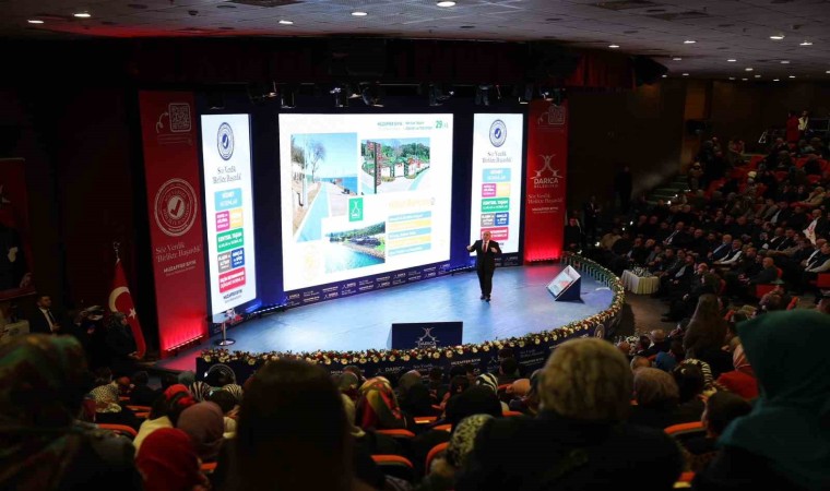 Ardından Darıca Belediye Başkanı Muzaffer Bıyık, sahneye çıkarak görev süresi boyunca yapılan eser ve hizmetleri slayt eşliğinde kamuoyu ile paylaştı. Beyanname dışında da birçok projeyi hayata geçirdiklerini ifade eden Başkan Muzaffer Bıyık, verdiği sözleri yerine getirmek için gece gündüz canla başla çalıştıklarını söyledi ve "Bugüne kadar ilçemize çok önemli eserler kazandırdık. Beyannamenizin yaklaşık yüzde 92’sini tamamlayarak verdiğimiz sözleri tutmanın gururunu yaşıyoruz. Söz verdiğimiz projelerin yanı sıra beyannamede olmamasına rağmen günümüzün ihtiyaçları karşısında ve vatandaşlarımızdan gelen talepler ile birlikte farklı birçok projeyi de ilçemize kazandırdık" diye konuştu.