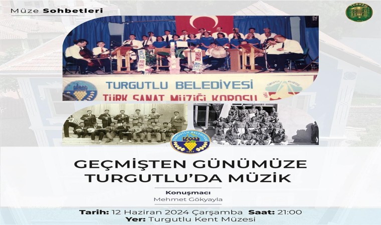 Turgutlu Belediyesi Kültür ve Sosyal İşler Müdürlüğüne bağlı olarak çalışmalarını sürdüren Turgutlu Kent Müzesi tarafından gerçekleştirilen Müze Sohbetlerinin haziran ayı programı, 12 Haziran Çarşamba akşamı müze bahçesinde gerçekleştirilecek. Saat 21.00’de başlayacak programın konusu Geçmişten Günümüze Turgutlu’da Müzik olacak. Program, Kent Müzesi Sorumlusu Mehmet Gökyayla tarafından sunulacak.